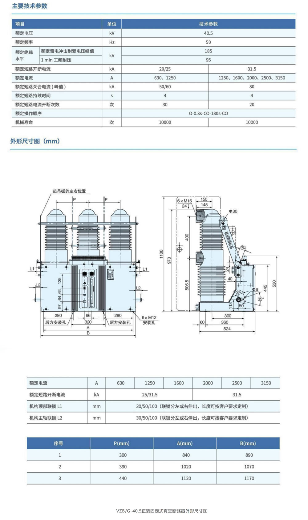 VZB/G-40.5正裝固定式真空斷路器